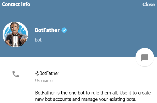 01. 텔레그램 앱에서 @botfather 를 검색하세요. 아래의 bot이 검색될 겁니다. (체크표시를 확인하세요)