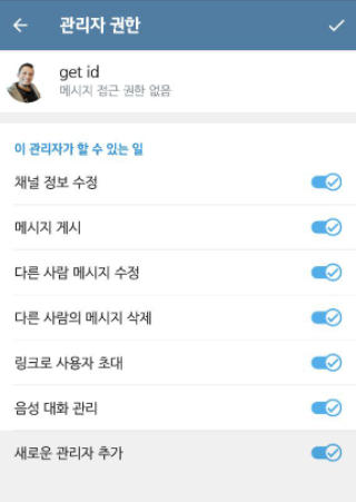 B-07. 위 단계에서 추가한 get_id_bot을 초대합니다. 관리자로 세워야 한다는 알람이 뜹니다. 그렇게 하세요.