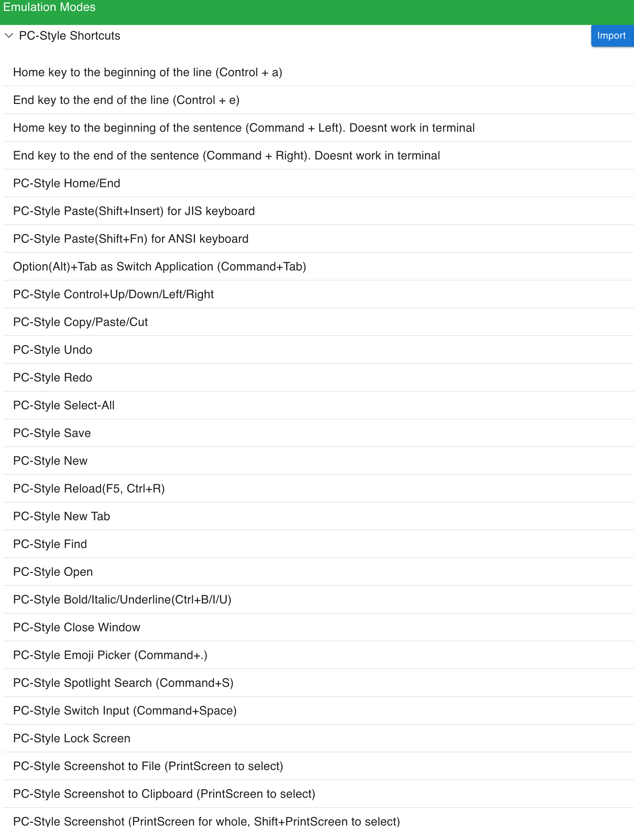 3-5. 뭐가 되게 많은데요, 저는 [Emulation Modes]의 [PC-Style Shortcuts] 를 Import 했습니다. 이유=많아서요.