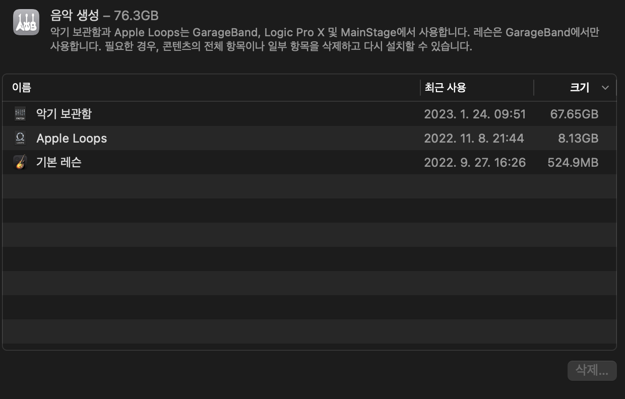 세 개를 선택후 [삭제..], 이후 삭제가 완료될 때 까지 대기합니다.