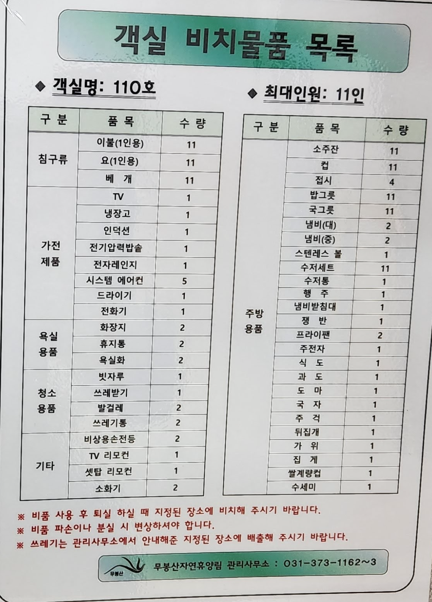 특히 11인실인 109호와 110호는 평면도가 완전하지 않아서 많이 불편했습니다.