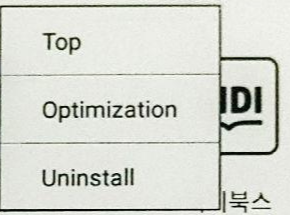설치 후, 아이콘을 길게 터치하고 계시면 팝업이 뜨며, Optimization 혹은 최적화를 터치하여